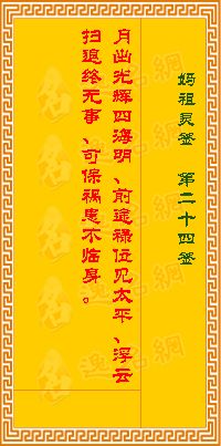 【解曰】 讨海:无大财阴作祟作塭:途中防水微利鱼苗:先微后有求财:无多利耕作:小收成 经商:无利进未遂月令:不遂六甲:先女后男婚姻:好结尾家运:平安吉庆 失物:月光在月暗无寻人:可回远信:佳音速至六畜:可纳筑室:渐且候待日期 移居:后即可以坟墓:后大吉出外:先少利后可得行舟:财轻平平凡事:紧和平了钱工 治病:阴邪祟求神安作事:月光即成功名:显荣宗恐有变官事:冒险有贵人好家事:大进圆满求儿:好