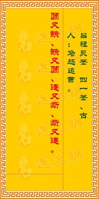 >> 吕祖灵签 四一签、古人:马超追曹。