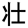 壮 壯 zhuàng [形] (1) (形声。从士,爿(pán)声。本义:人体高大,肌肉壮实) (2) 同本义 [tall and big;srong;robust] 壮,大也。——《说文》 壮,健也。——《广雅》 秦晋之间凡人之大谓之奘,或谓之壮。——《方言》 三十曰壮。——《礼记·曲礼》 壮士,赐之卮酒。——《史记·项羽本纪》 右贤王惊,夜逃,独与其爱妾一人,壮骑数百驰。——《史记·卫将军骠骑列传》 男气壮力。——《逸周书》 壮哉我中国少年。——清·梁启超《饮冰室合集·文集》 三小姐长远勿见,好像壮仔点哉。——清·韩邦庆《海上花列传》 (3) 又如:壮浪(健壮);壮盛(强壮旺盛);壮勇(强壮而勇敢);壮武(强壮勇武);年轻力壮;兵强马壮;壮健(强壮,强健) (4) 豪壮;豪迈 [grand and heroic] 彼不知惧,而学壮语,此之不武,何能为也。——《晋书·谯刚王逊传》 七龄思即壮,开口咏凤凰。——杜甫《壮游》 (5) 又如:壮夫(豪壮之士,豪杰);壮思(豪壮的情思);壮情(豪壮的情怀、抱负);壮意(豪壮的意气) (6) 勇壮 [brave and sturdy] 风萧萧兮易水寒,壮士一去兮不复还。——《战国策·魏策三》 (7) 又如:壮武(勇壮,雄武);壮悍(勇壮强悍);壮毅(勇壮刚毅);壮辞(勇壮的言辞) (8) 宏伟 [grandeur] 克壮其犹。——《诗·小雅·采芑》 且夫天子以四海为家,非壮丽无以重威。——《史记·高祖纪》 (9) 又如:壮丽(雄伟华丽);壮制(宏伟的制作);壮图(伟大的志愿、计划) (10) 坚实,坚牢 [firm] 金绳铁索纽壮,古鼎跃水龙腾梭。——韩愈《石鼓歌》 |